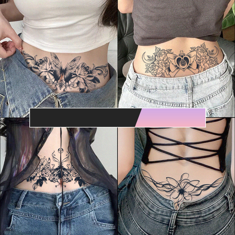 胸の花の紋様は防水の女性のセクシーな小腹の後で腰の持続的な刺青の草本を貼って光を反射しません。
