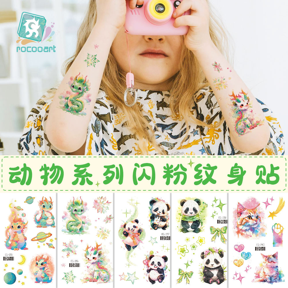2024瑞卡竜クロスボーダー新型閃粉竜パンダウサギ子供漫画かわいい防水カラー刺青シール