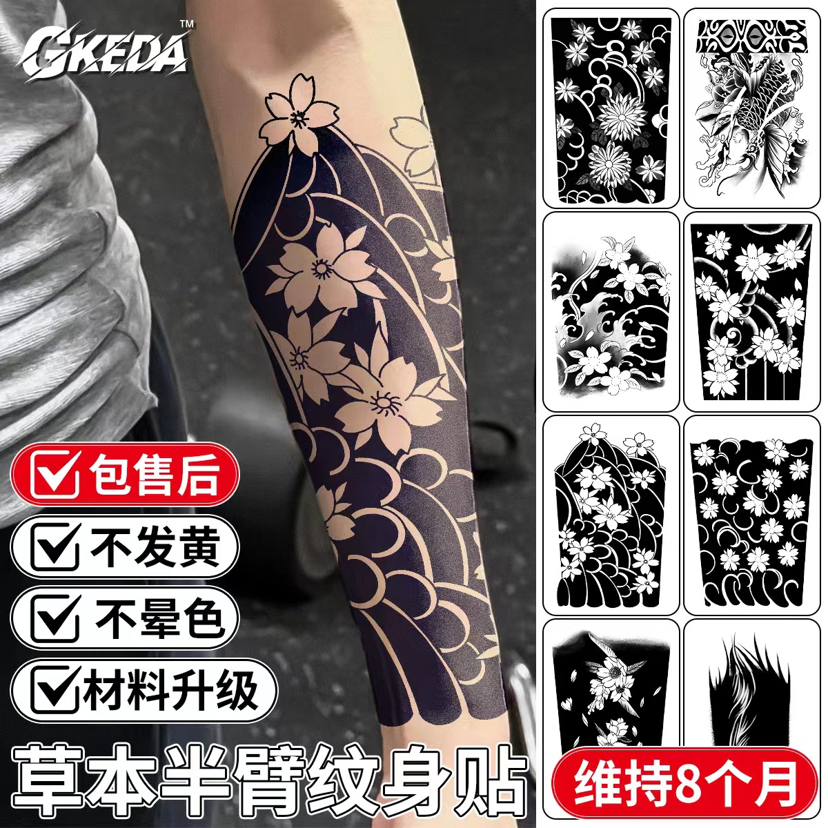 ハーブ大花アームジュースタトゥーステッカーグラデーション無反射半永久インスタイル男性ダークフラワーアーム女性防水