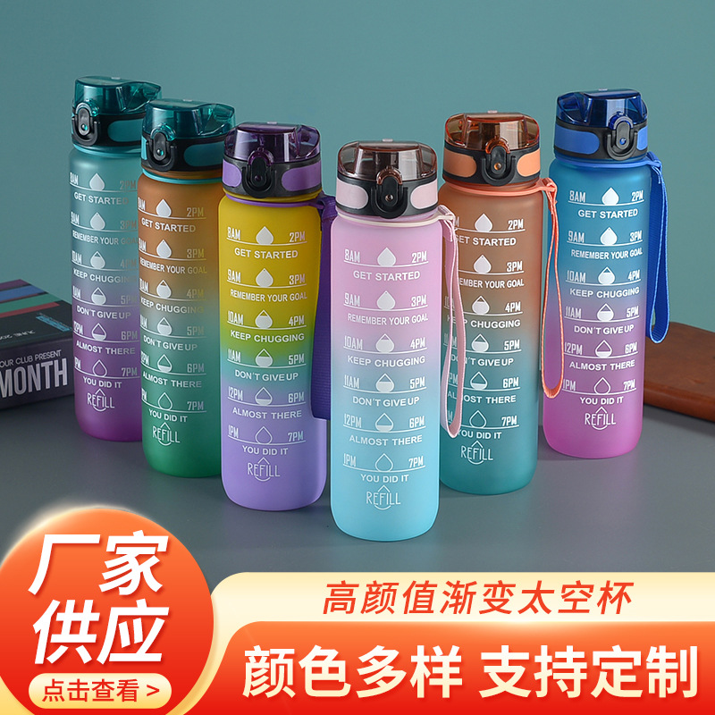 大容量スポーツカップ男女学生屋外水筒高颜値フィットネス夏グラデーションフロストプラスチックカップ