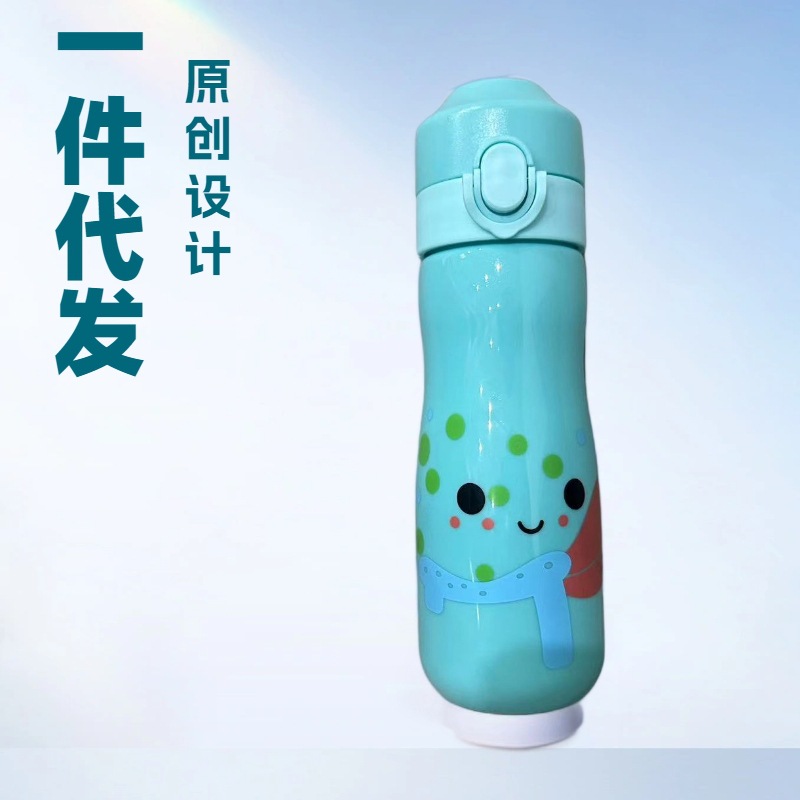 ポータブル漫画プリントストレートドリンクカップ立体パターンケトル高光沢カラフルなグラデーションカラースペースカップ RS-202035