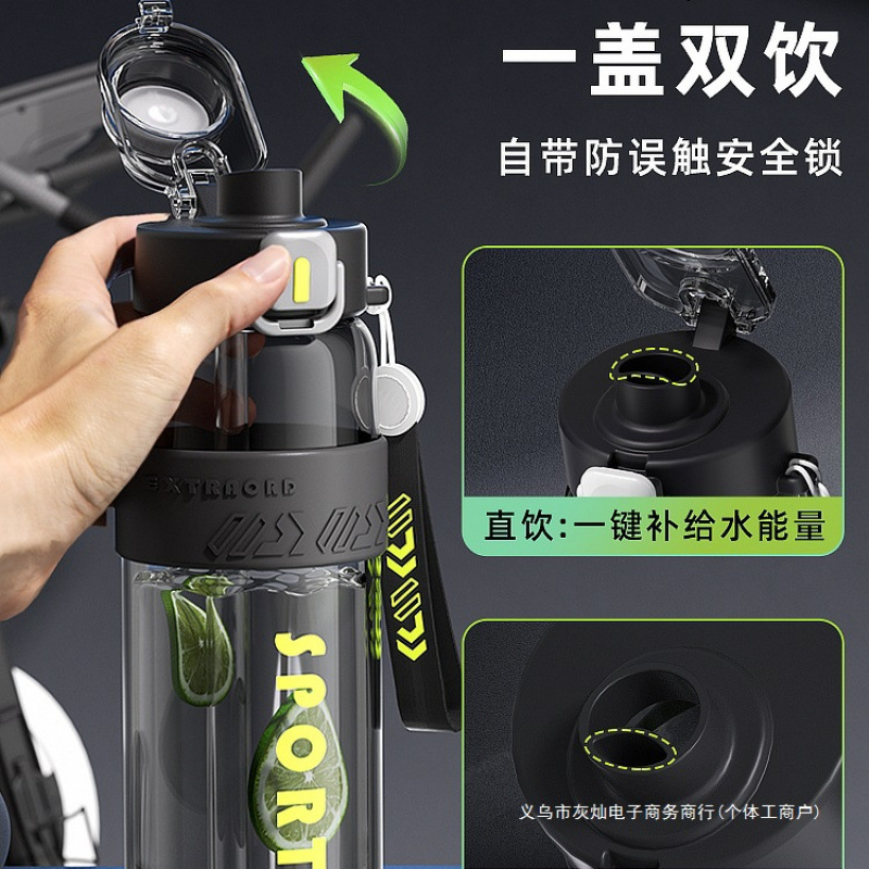 大容量双饮吸管杯女学生男户外便携杯子运动食品级塑料防摔水壶夏