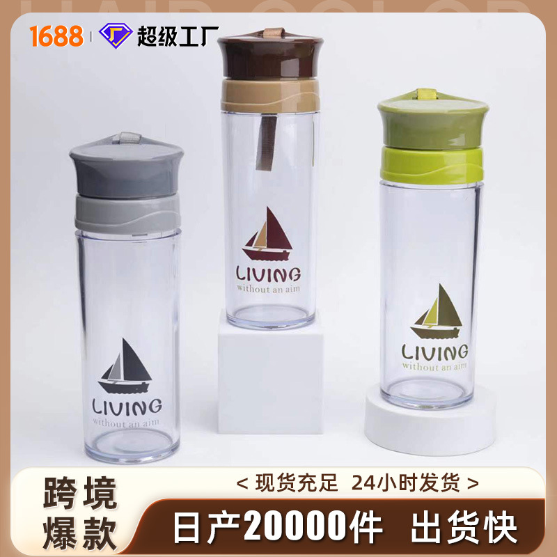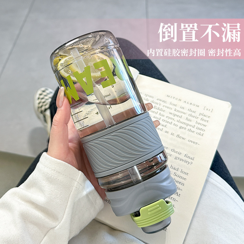 希楽tritanコップ男女士高颜値学生大容量カップストロー二重カップベルト付き水筒