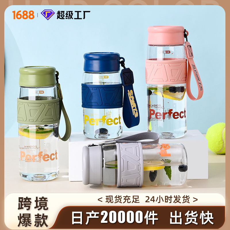 ストレートカップアマゾン水カップ工場卸売りプラスチック水カップ携帯付き水筒男女学生カップ大空カップ