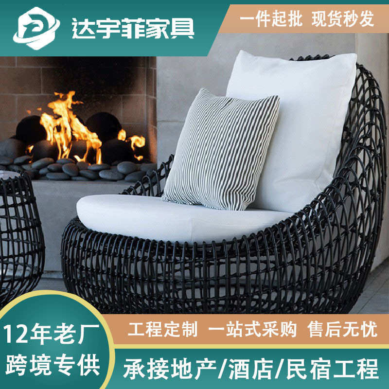 屋外ソファ庭別荘ガーデンバルコニー籐編みシングルソファ家具屋外防水日焼け止めカジュアルセット