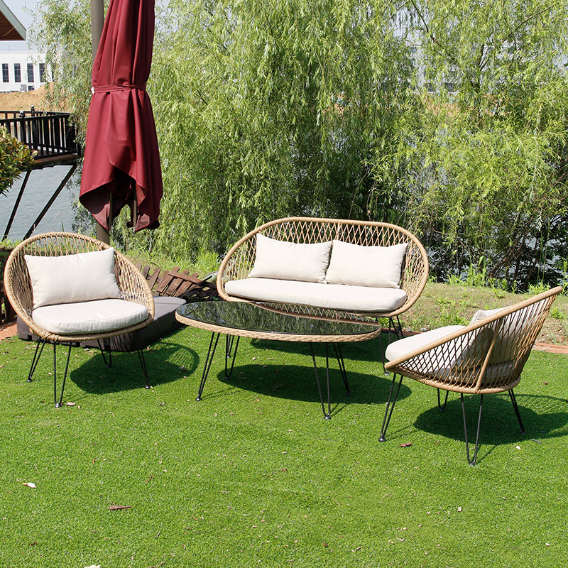 屋外花園ソファー庭園露店別荘屋外露天防水日焼け止めレジャー民宿藤椅子ソファーセット