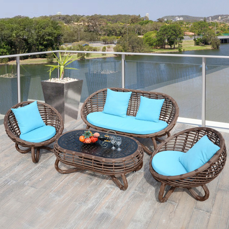 屋外籐編みソファクラシック家具円形組み合わせバルコニー別荘民宿屋外露天庭園ガーデンテーブル椅子