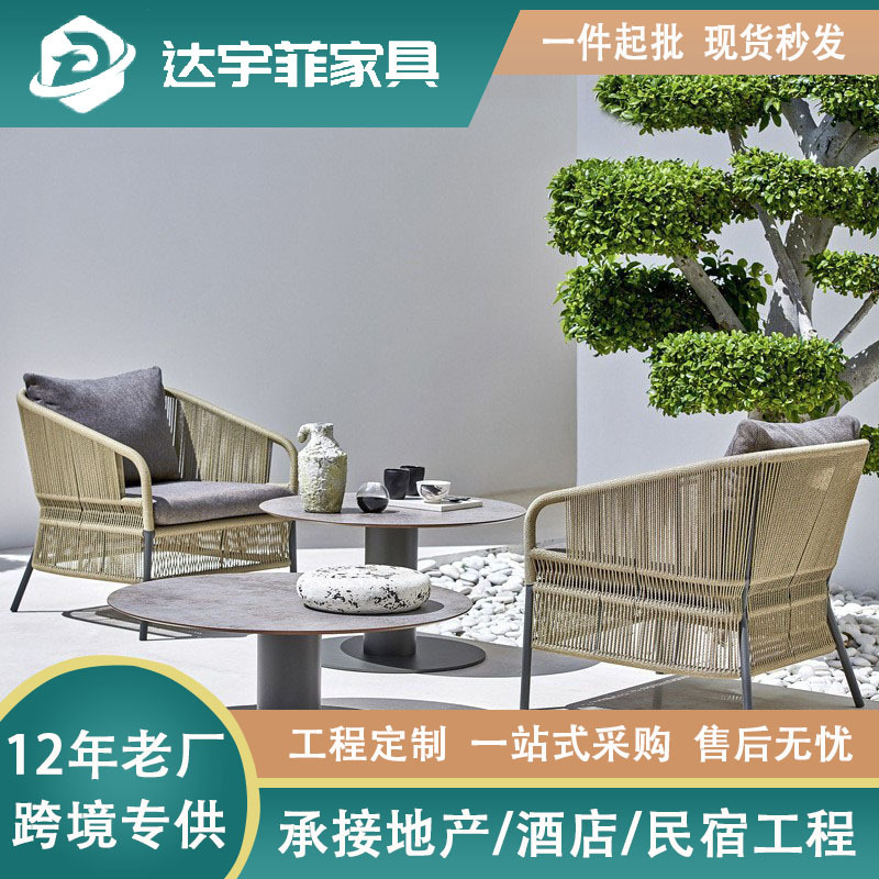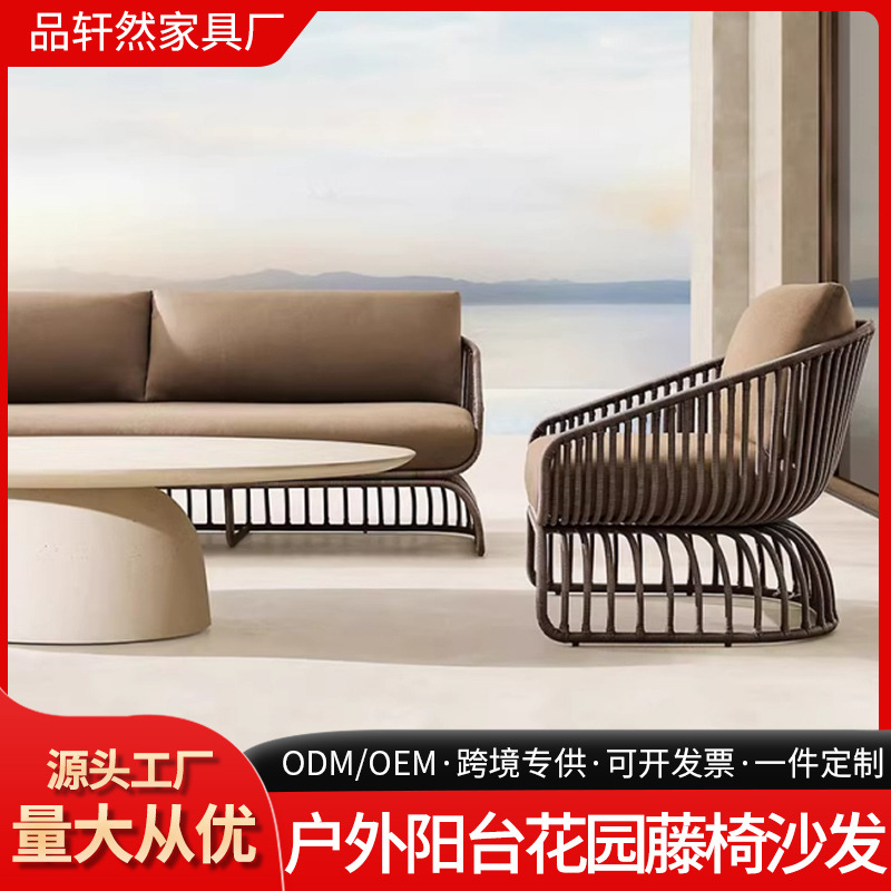 北欧屋外藤編茶数ソファー組み合わせ庭花園ベランダ別荘民宿ホテル防水日焼け止めソファー
