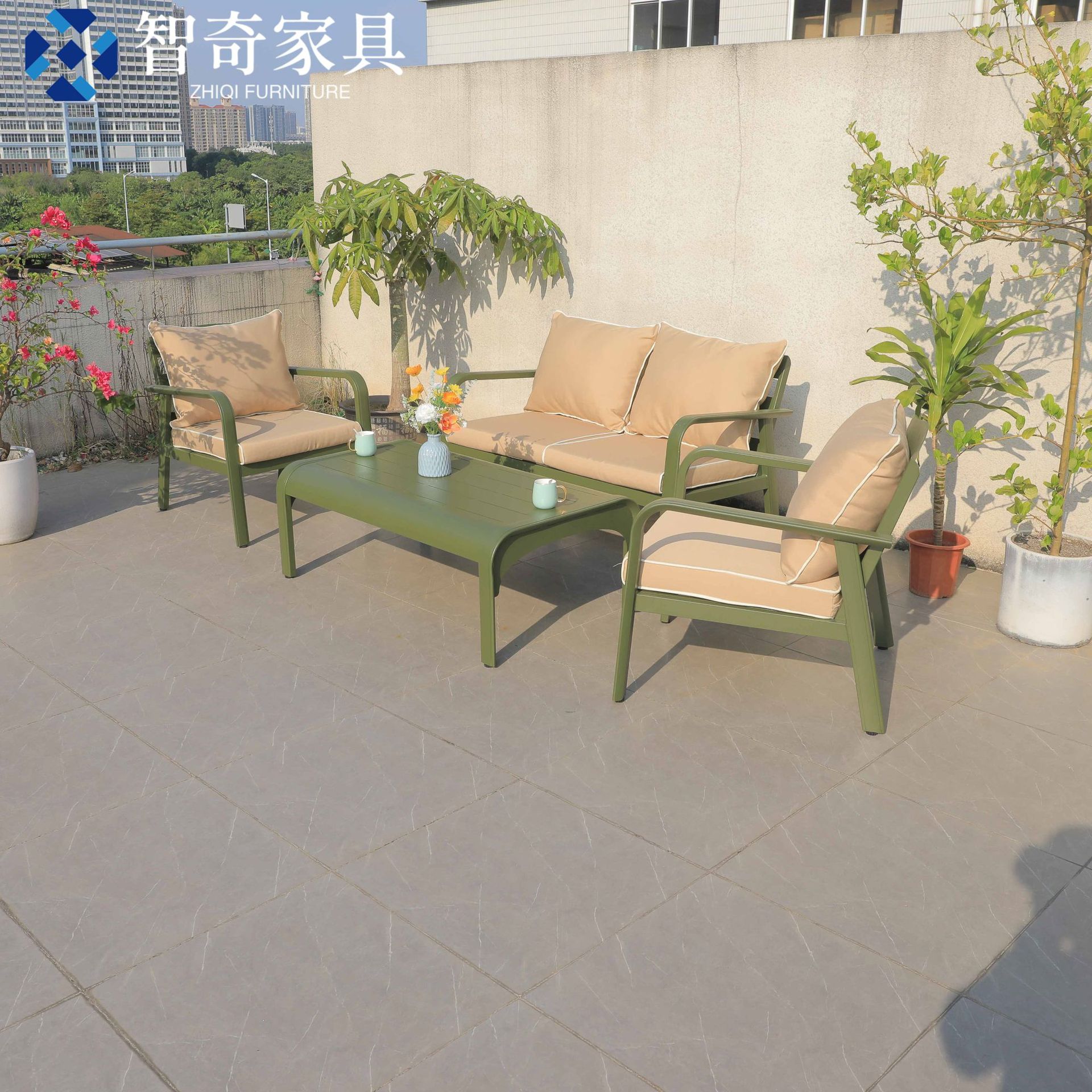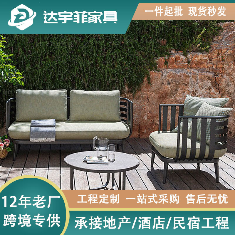 屋外ソファー茶何工業風組み合わせホテル別荘バルコニー庭園露天屋外防雨日焼けレジャー家具