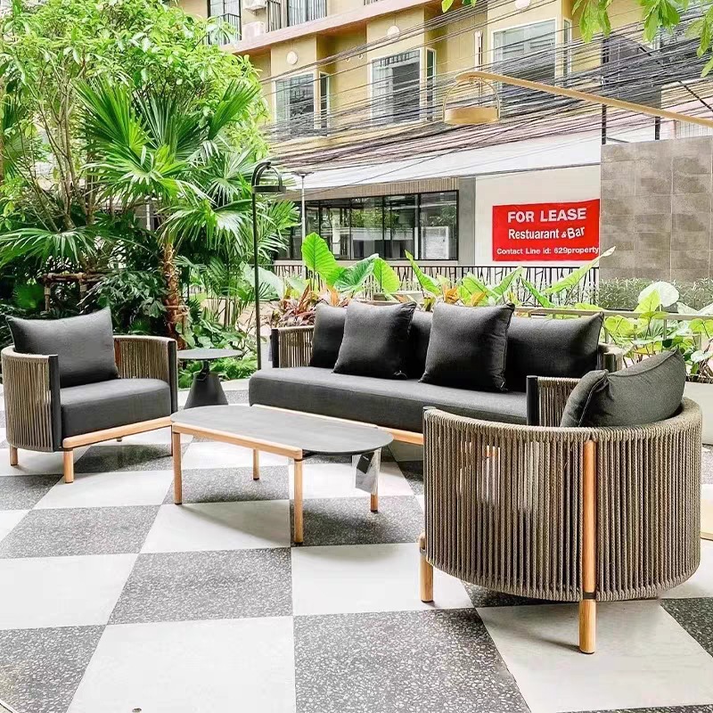 北欧屋外ソファー庭園高級日焼け止め実木家具花園民宿露店防水グレープフルーツ茶の組み合わせ