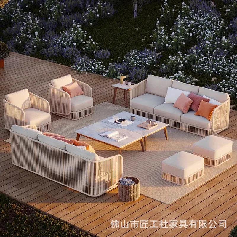 アウトドアレジャー藤編み家具屋外バルコニーデザイナーソフト別荘庭ビーチホテル編みロープソファー