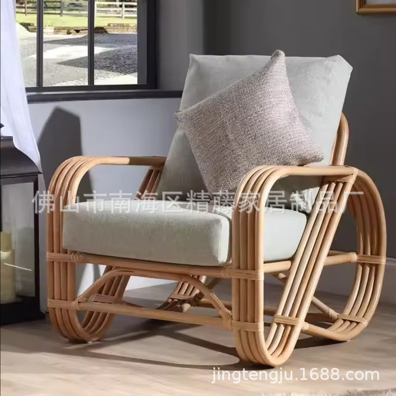 客間藤椅子デザイナー創意小戸型レジャー椅子ベンチフランス実木藤編怠け者ソファー民宿