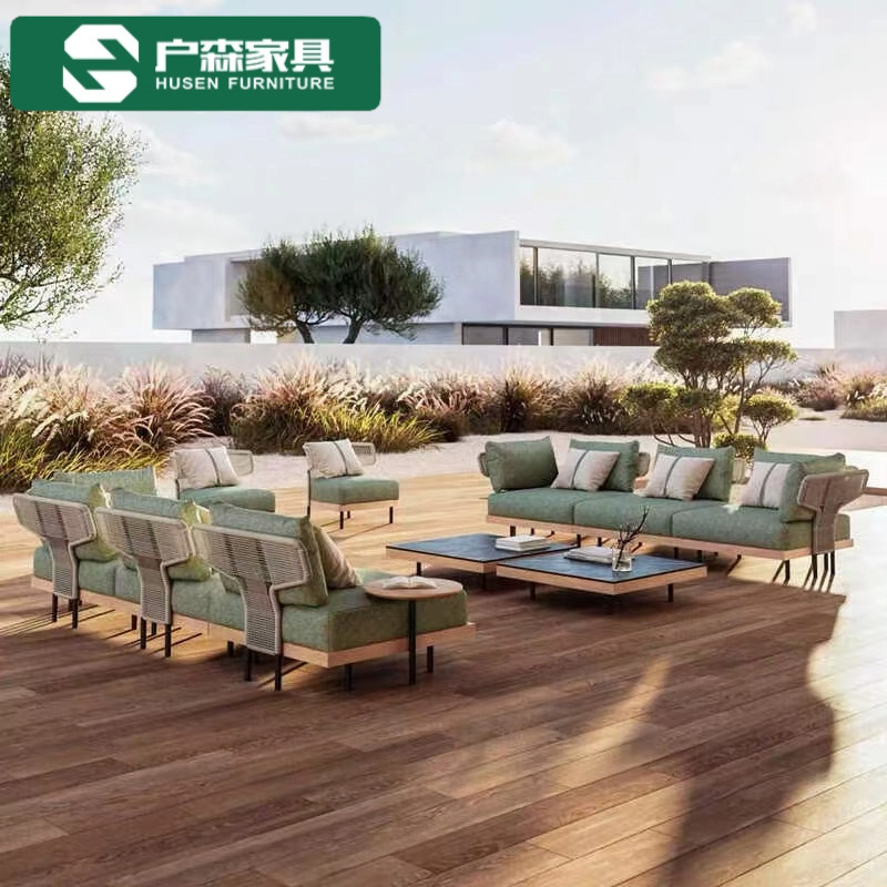 屋外のソファーの別荘のレジャーの組み合わせの藤はソファーの実木のお茶のいくつかの屋外の花園の庭の防水の日焼け止めの家具を編みます。