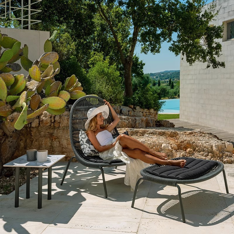 北欧屋外ソファーベッドセット庭屋外ガーデンプールホテルベランダ露天鳥の巣藤編リクライニングチェア