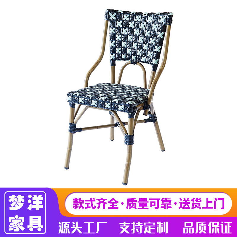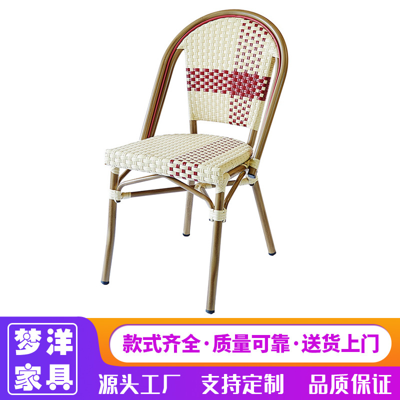籐編み屋外テーブル椅子フレンチ屋外カフェダイニングチェア模造木目アルミパイプpe籐編み椅子スタッキング可能