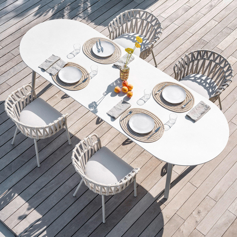 工場卸売り高級別荘北欧編藤テーブル椅子カフェ屋外レジャー背もたれ屋外ソファーの組み合わせ