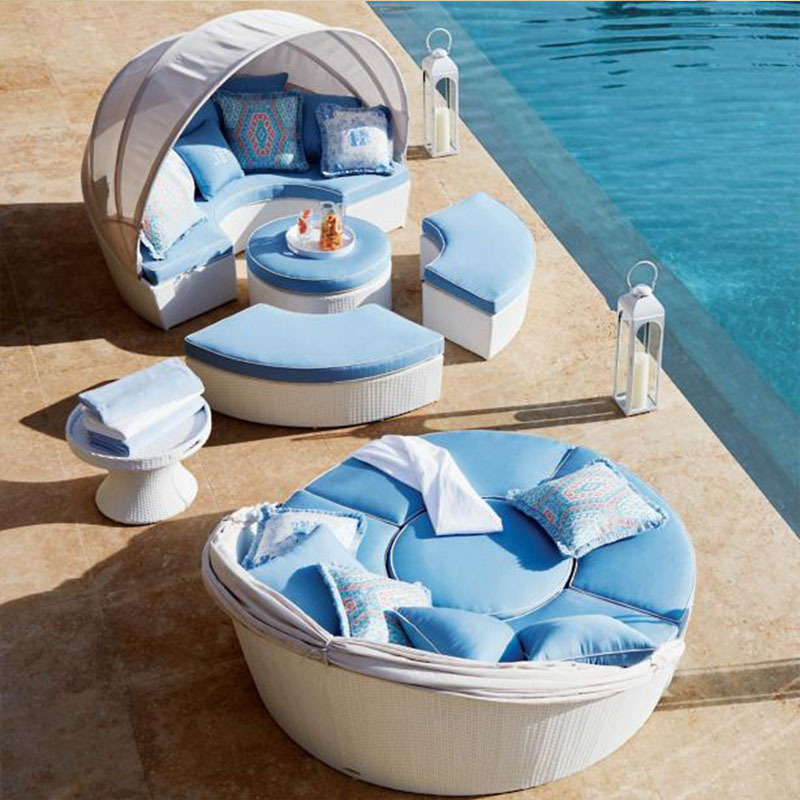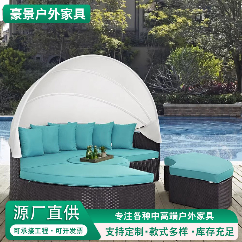 クロスボーダー屋外籐編みソファつなぎ大きいラウンドベッドカジュアル屋外ベッドテントセットリゾートビーチソファ