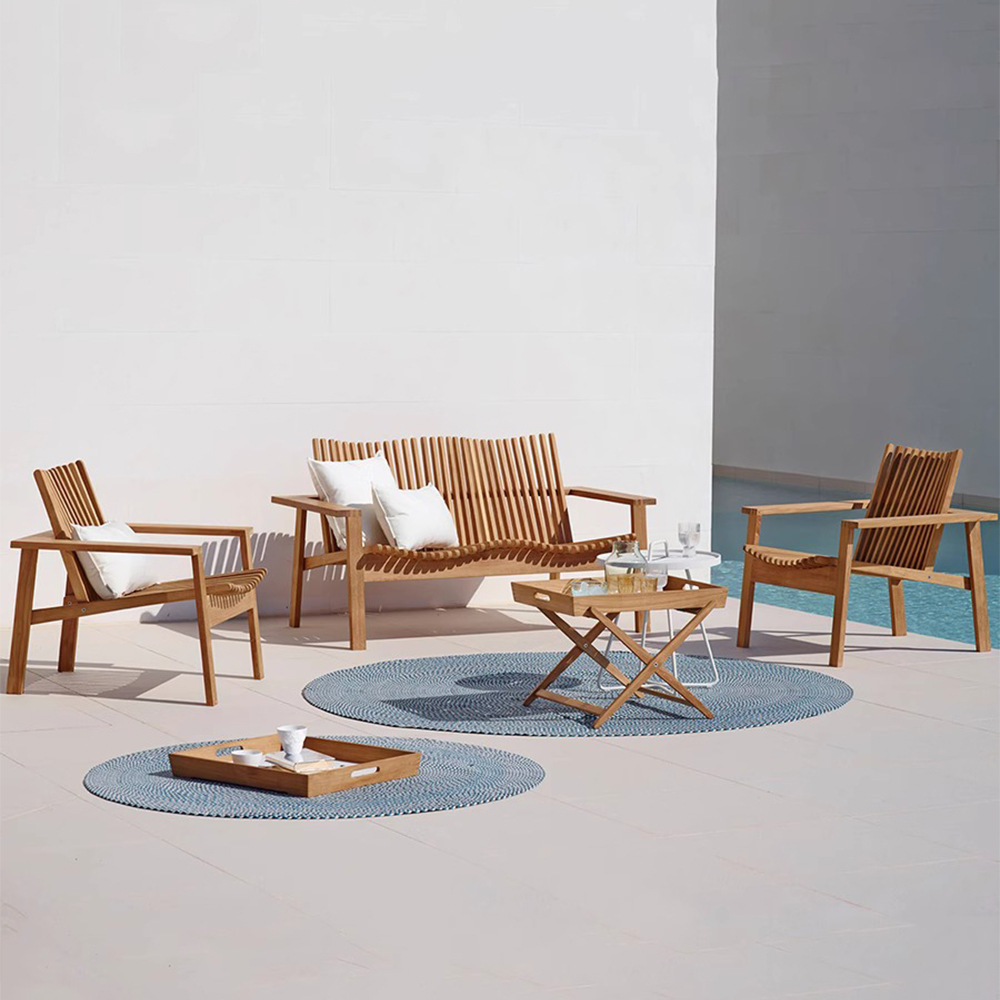 チーク屋外ソファホテル別荘全実木テーブル椅子デザイナー創意露天庭園別荘レジャー家具
