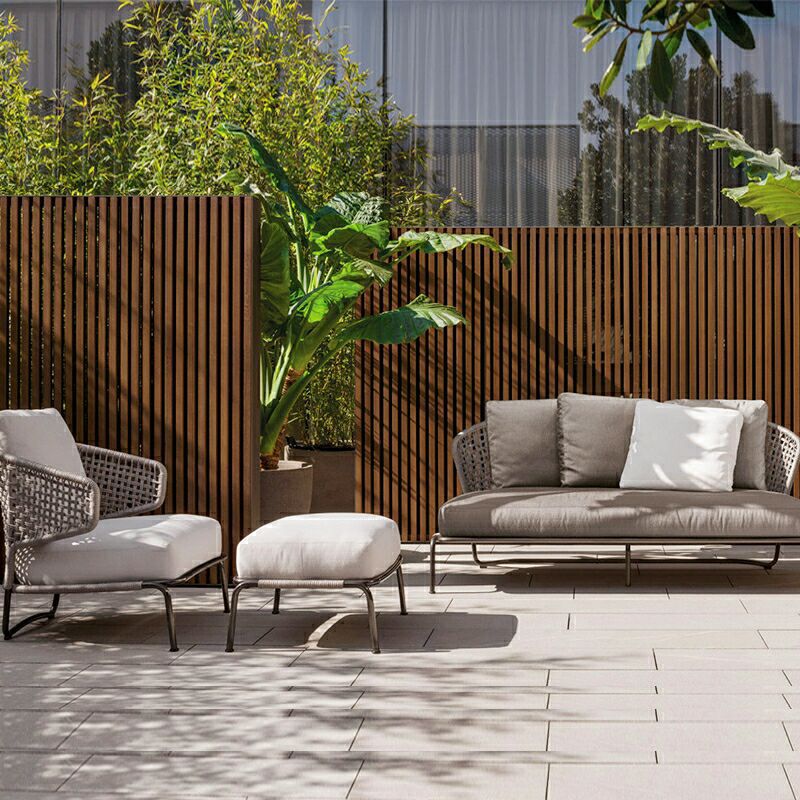 北欧屋外ソファー縄編み庭園別荘レジャーセット露天屋外日焼け止めシングル藤家具ソファー