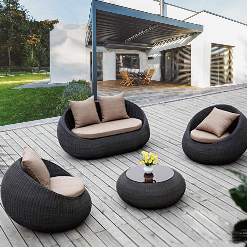 北欧アウトドアレジャー籐編みソファ庭バルコニーテラス籐椅子セット日焼け止め防水ガーデン別荘家具