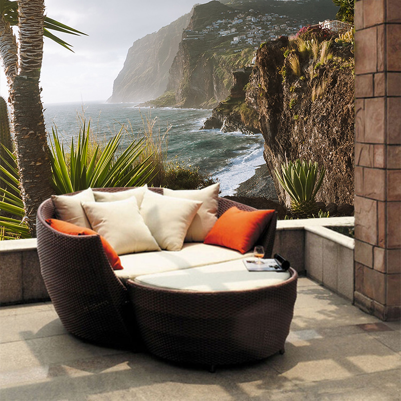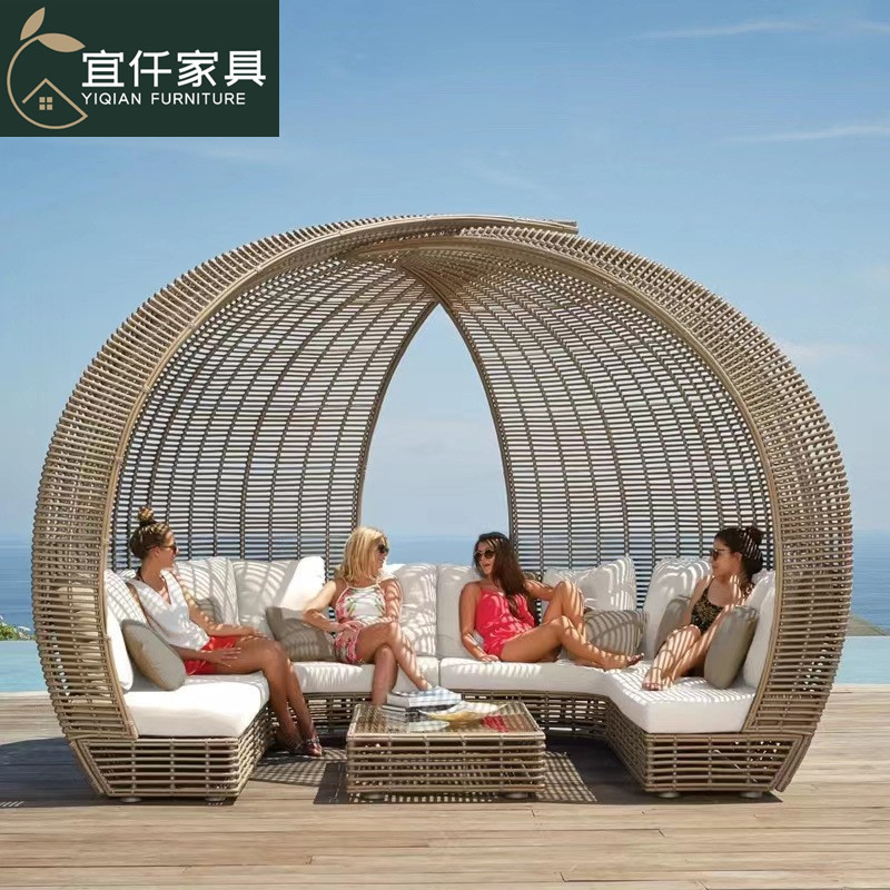 屋外籐編みソファコンビネーションホテルプール民宿庭横ベッド別荘ガーデン天台創意屋外家具