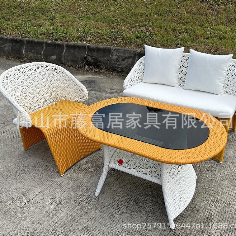 屋外藤編みソファー庭別荘防水日焼け止めレジャー編み茶セット北欧露天屋外家具