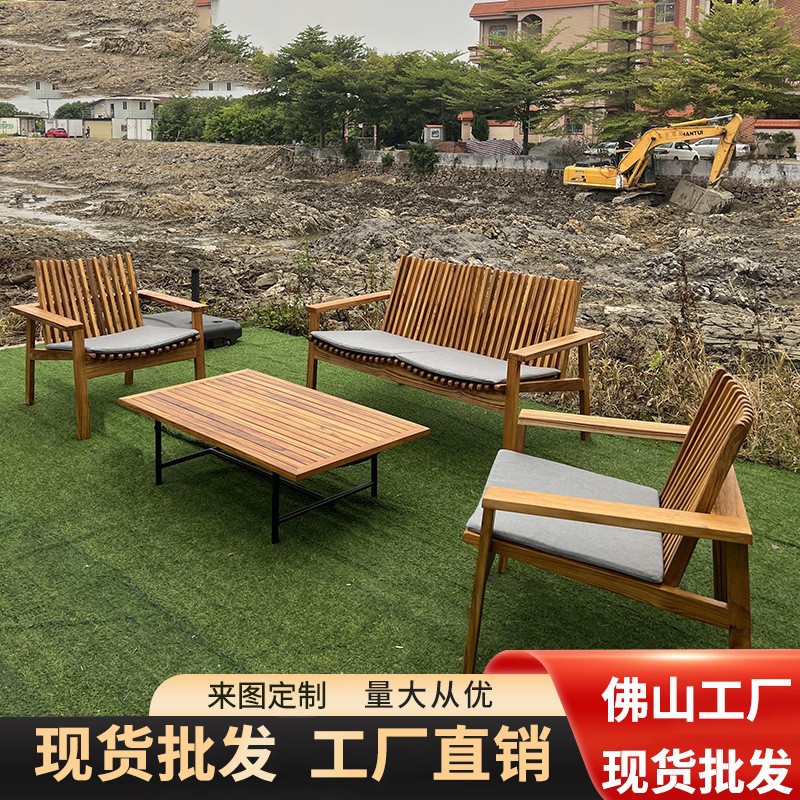 屋外レジャー家具庭園別荘実木ソファー露店民宿屋外グレープフルーツ茶テーブルと椅子の組み合わせ