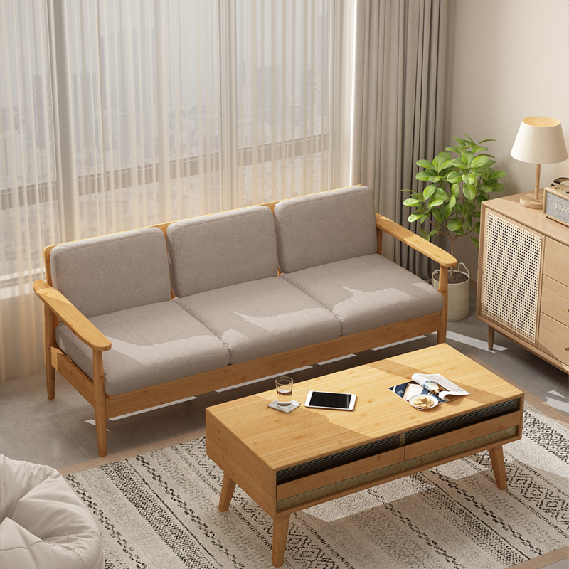 ソファー日本式実木小戸型三人位組み合わせ家具客間冬夏両用原木シンプル布芸ソファー