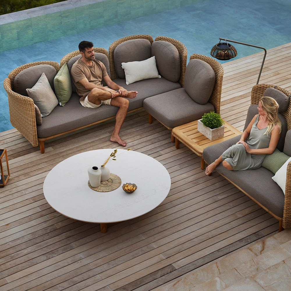 北欧レジャーチーク籐編みソファ屋外シングルダブル別荘庭家具バルコニー防水日焼け止めセット