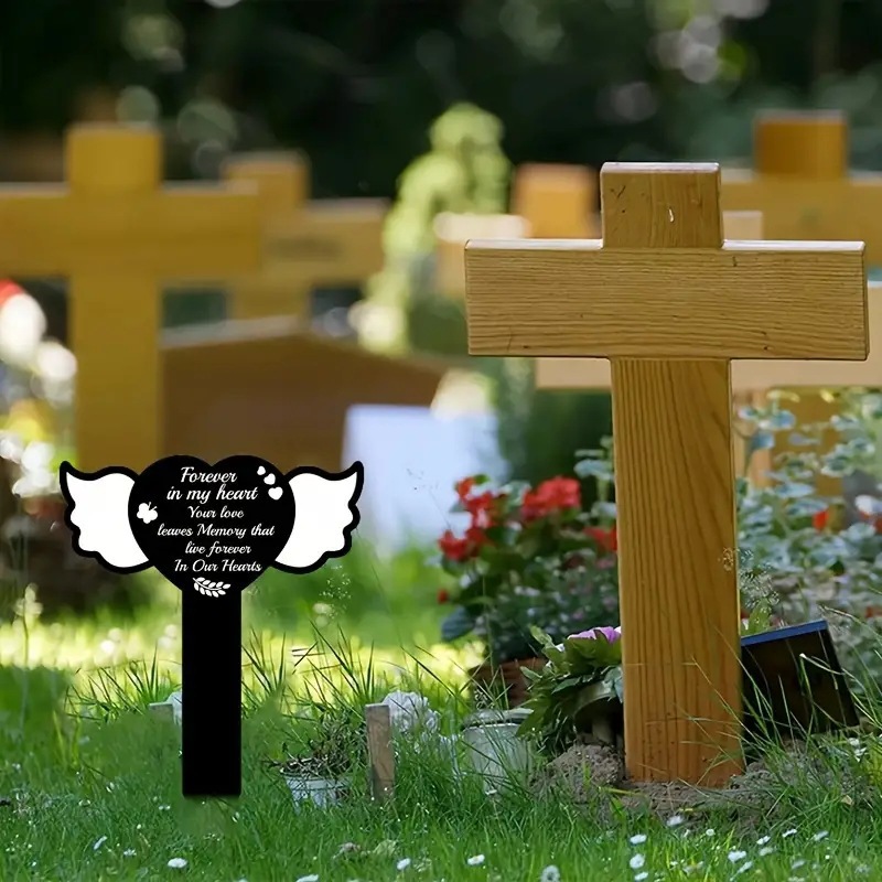 心と天使の翼記念杭金属花園杭金属記念墓マークペットの記念杭