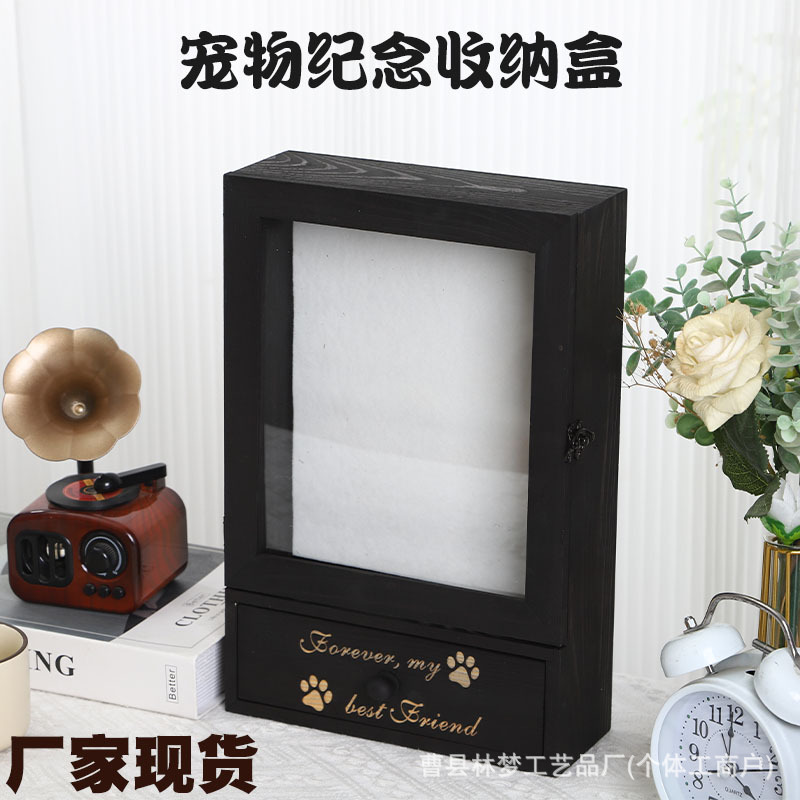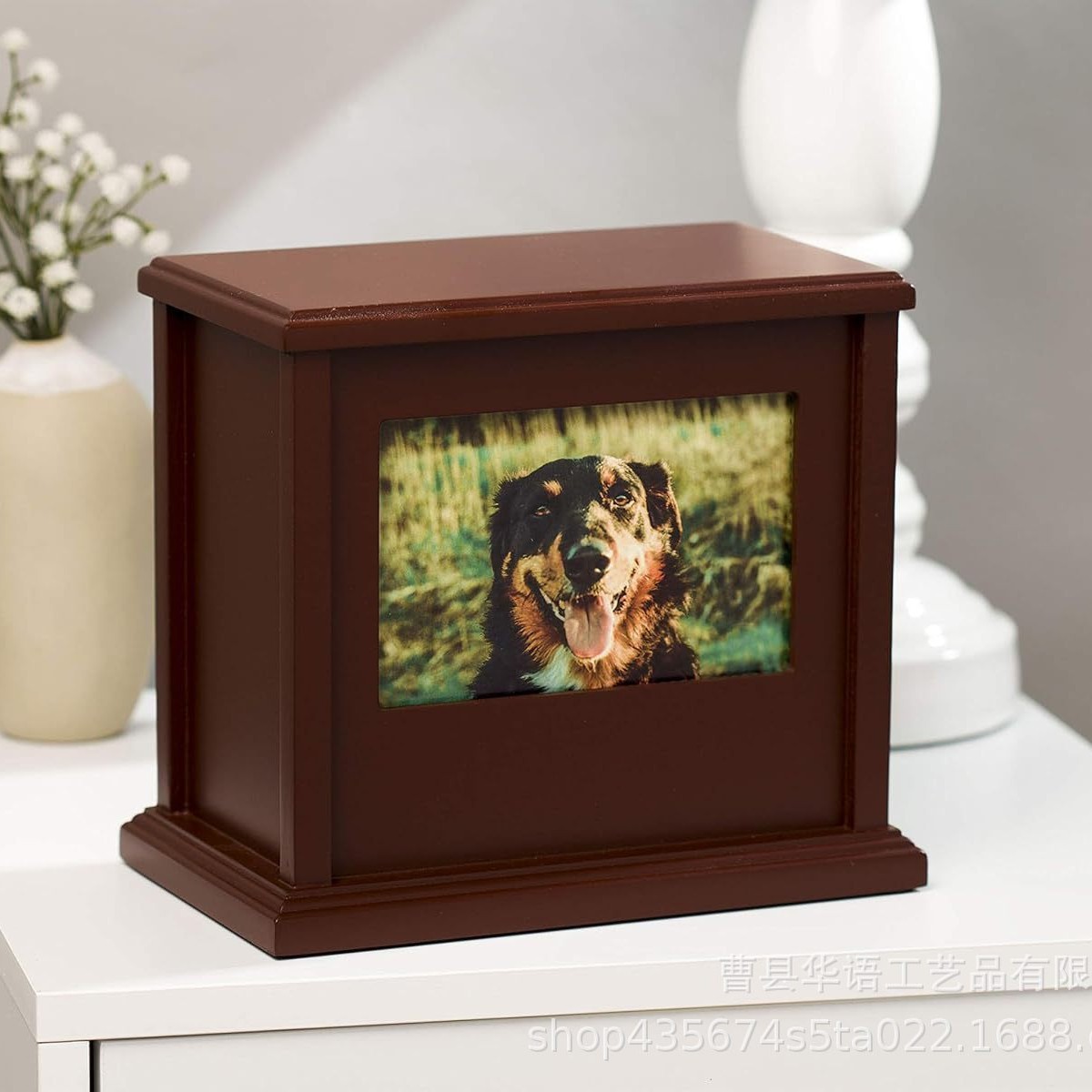 無垢材ペット記念ボックス犬猫骨壺火葬灰収納ボックスフォトフレーム付きペット棺ボックス