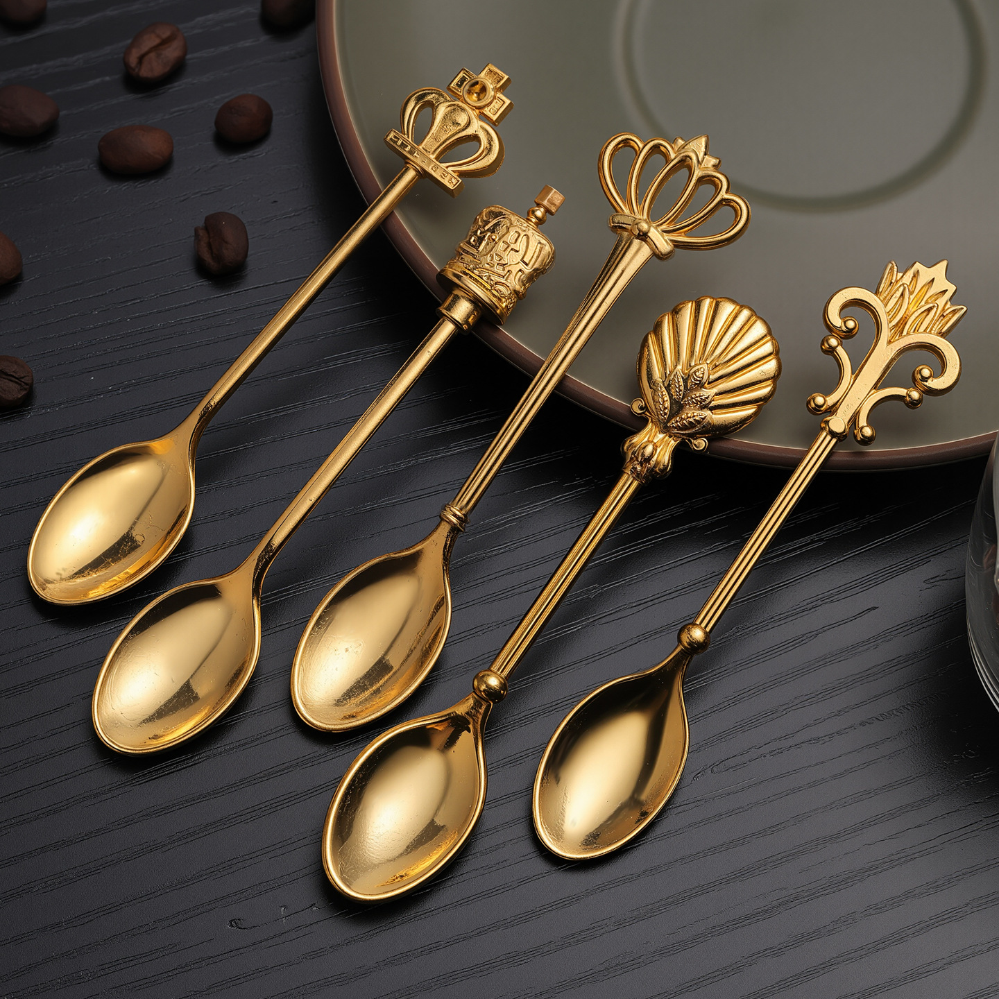 卸売亜鉛合金レトロスプーンゴールデンクラウンファンコーヒースプーンクリエイティブお土産ツバメの巣蜂蜜ミキシングスプーン