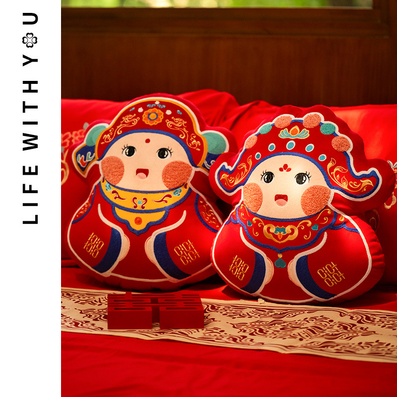 ベッド人形、結婚用の新しい高級中国風のウェディングベビー人形、ウェディングベビー、ウェディングベビー枕、ウェディングルームアレンジメント