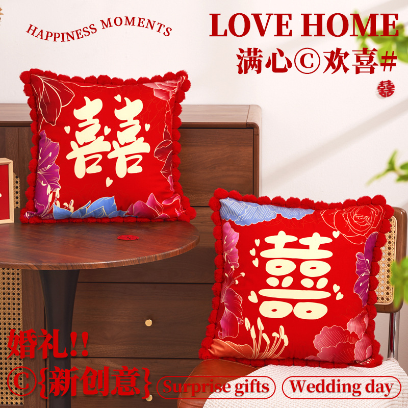 結婚式のハッピーワード枕、結婚式のソファ枕、結婚式の部屋の装飾、結婚式のクリエイティブなウェディングギフト