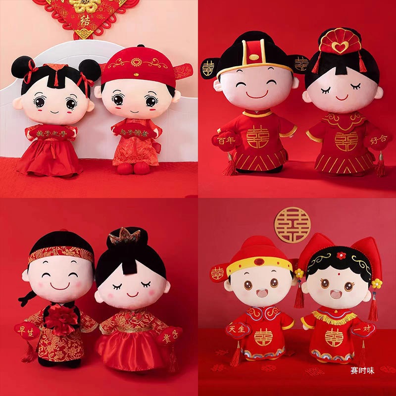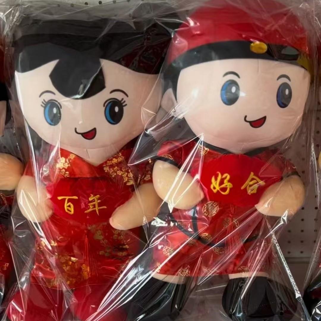 卸売ウェディング用品新婚ぬいぐるみベッドプレス人形ペアウェディング中国人形ウェディング人形