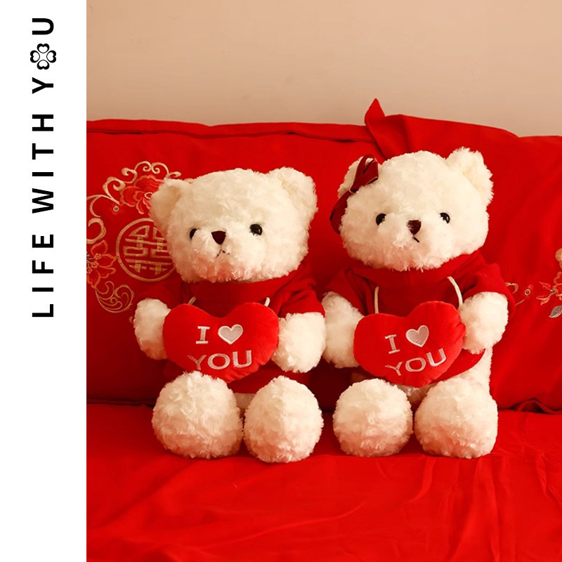 無偶結婚室、ベッド用クマ人形、花火ペア、赤い枕、親友やプレゼント用のウェディング用品