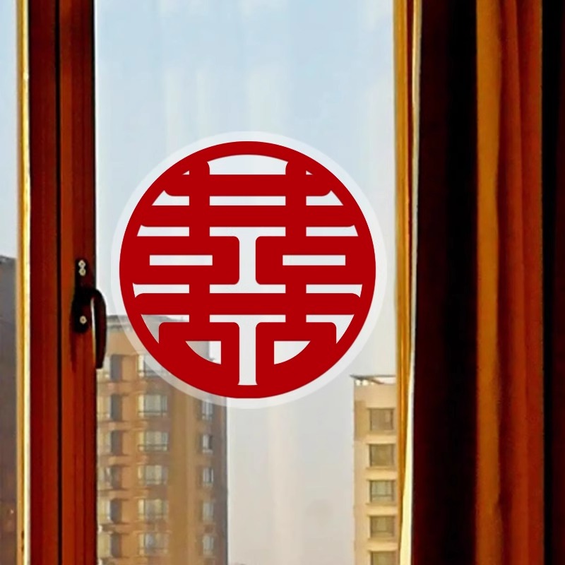 喜の字の結婚の静電気は窓の結婚の部屋を貼ります。