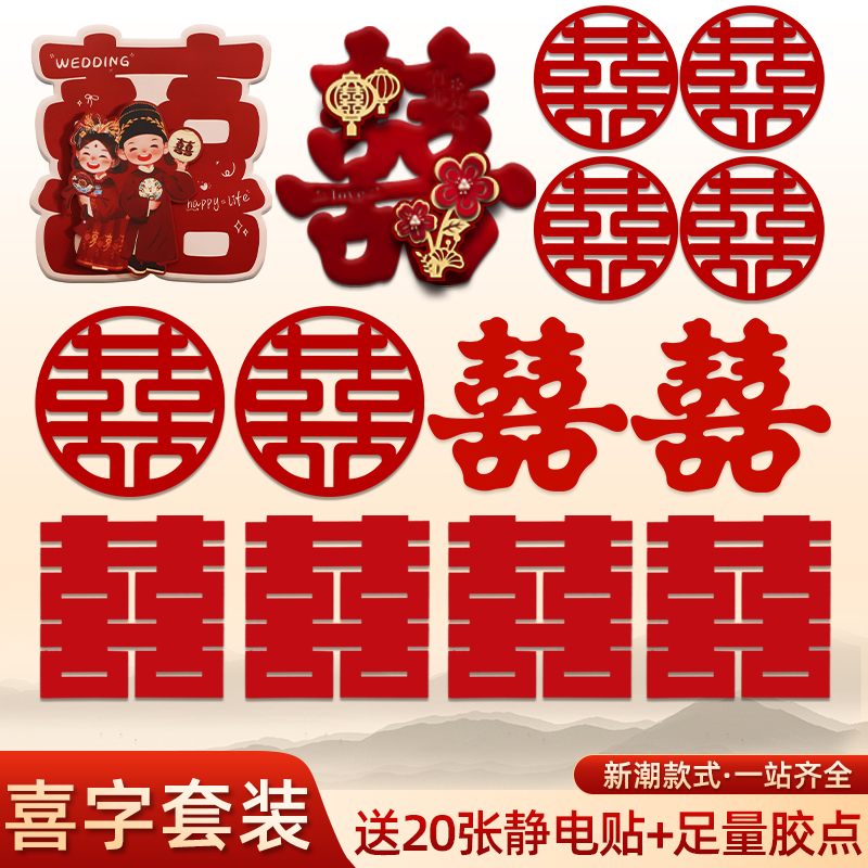 喜字貼り結婚喜字婚房配置字シール赤双喜貼りドアセット結婚祝い用品大全