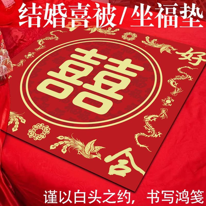 中国風高級結婚百喜蓋絨毯ワインレッド厚手の結婚部屋の装飾寝室のベッドの後ろにタオルを掛けて祝日にプレゼントします。
