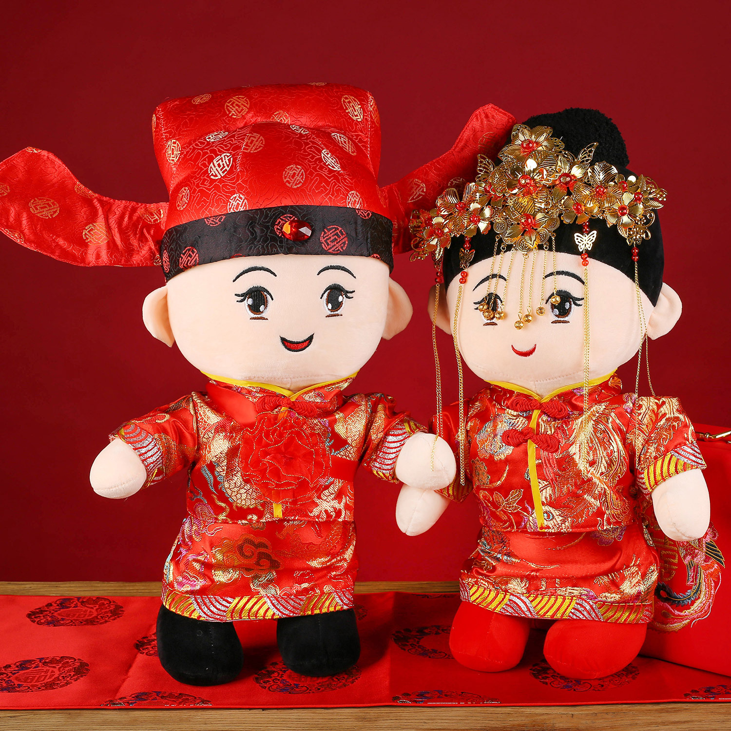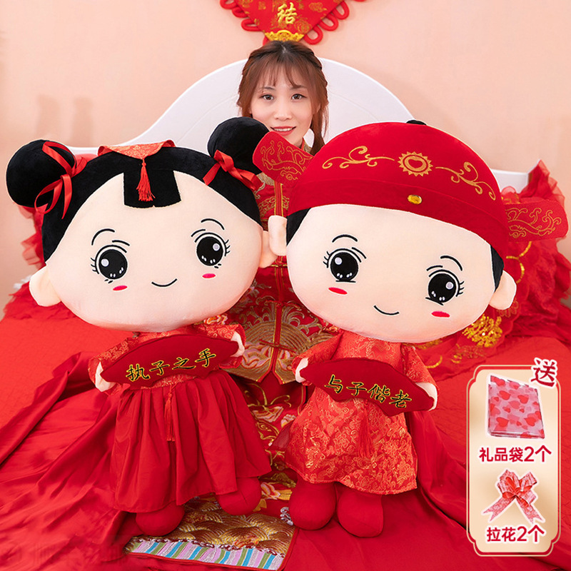 新商品の鳳の結婚祝いの人形の公仔の時代の服装の結婚のベッドの人形のペアの創意のぬいぐるみは枕を抱いて卸売りします。