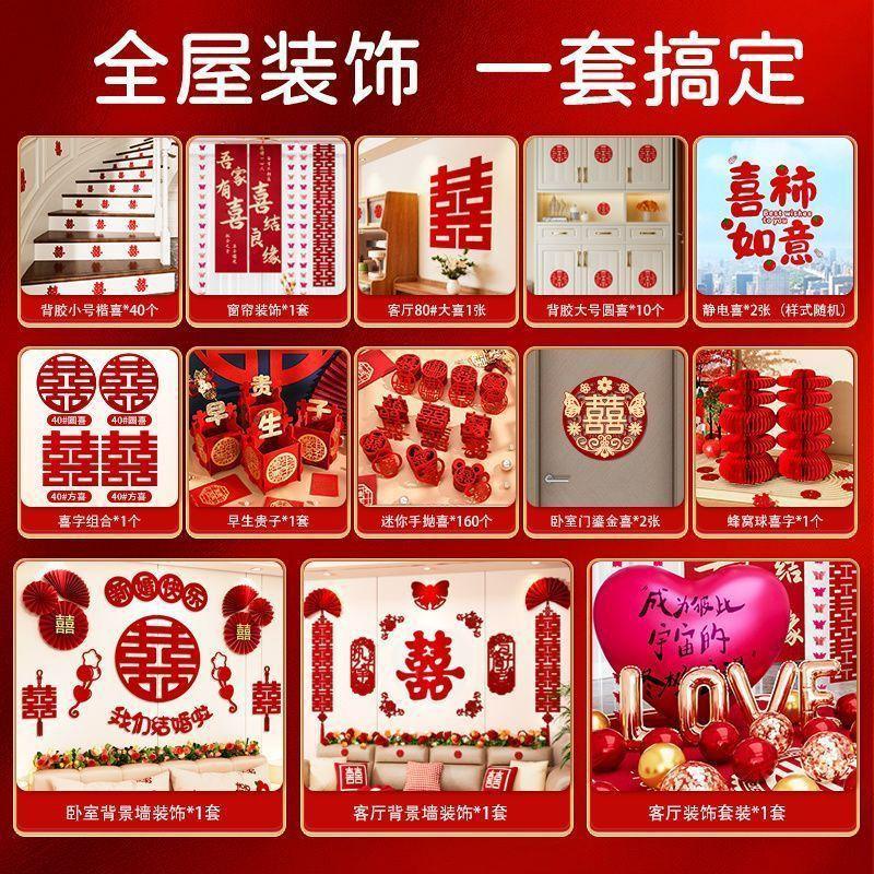 結婚喜字帖新婚スーツ結婚祝い飾りドアガラス女性階段たんす結婚部屋配置結婚式