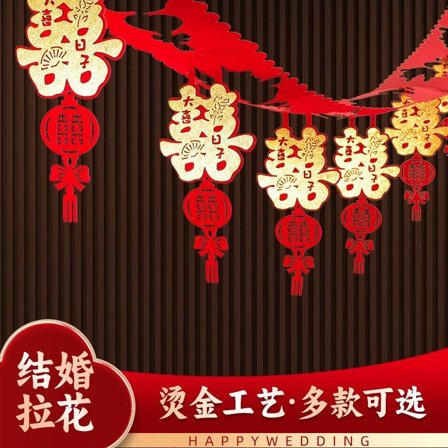 結婚用品の卸売りの結婚部屋の配置は花を引く男女の新しい部屋の寝室の客間の喜字を飾って天井の装飾品を飾ります。