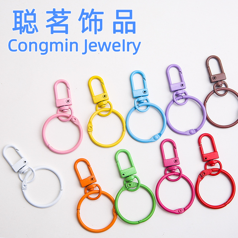 新型カラー金属塗装25mmスプリングバックルキーホルダーリングリングリングバッグ公仔鍵ストラップ部品