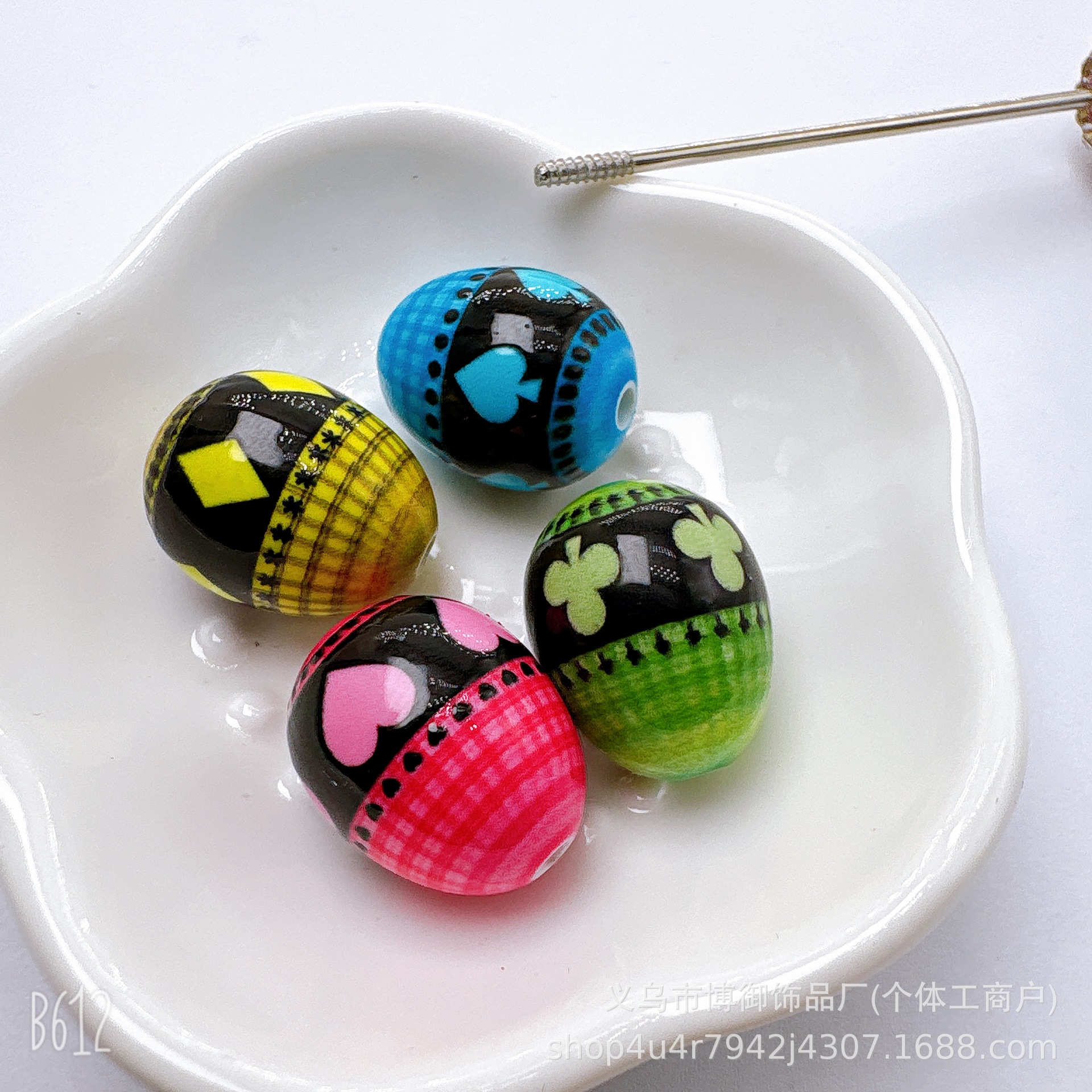 ペイントプリントアクリルトランプパターン垂直穴イースターエッグ DIY ルースビーズビーズキーチェーン携帯電話チェーンアクセサリー
