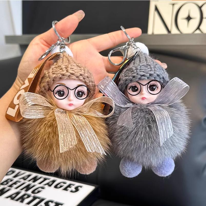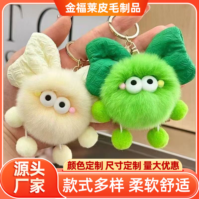ウサギの毛の新型のアイデアをまねて、石炭のボールの精霊のかばんを蝶結びしてぬいぐるみの車のキーホルダーを飾ります。