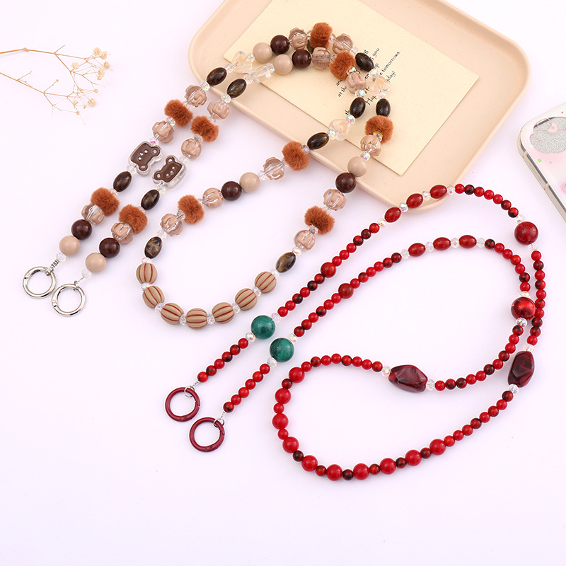 新型アクリルビーズ熊斜めショルダーチェーンリュックサックチェーンアクセサリー紛失防止携帯ストラップ