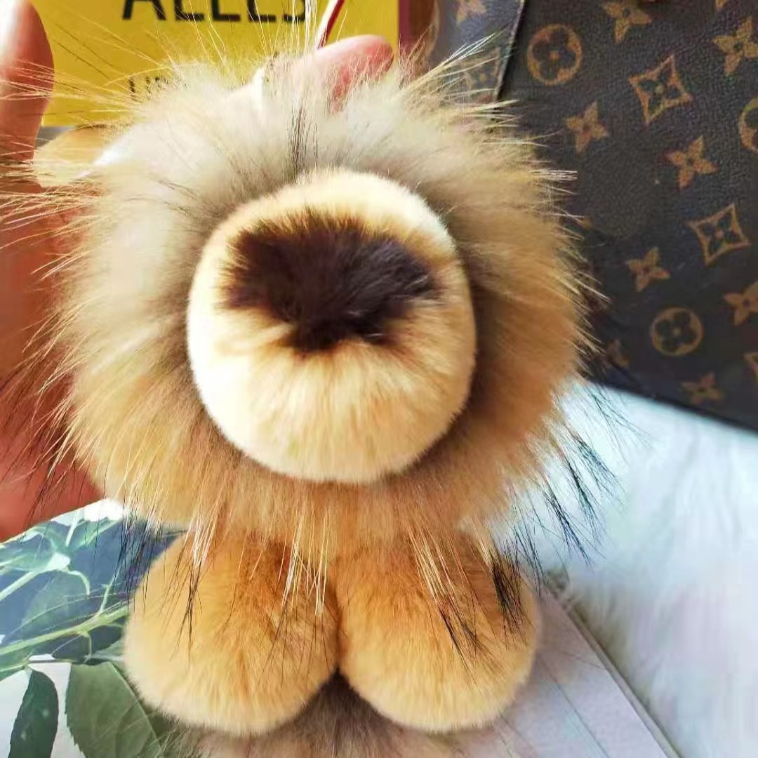 本物のレッキスラビットファーの小さなライオンのぬいぐるみ、車のキーホルダー、ペンダント、人形、バッグ、誕生日プレゼント、飾り、新鮮で可愛らしい