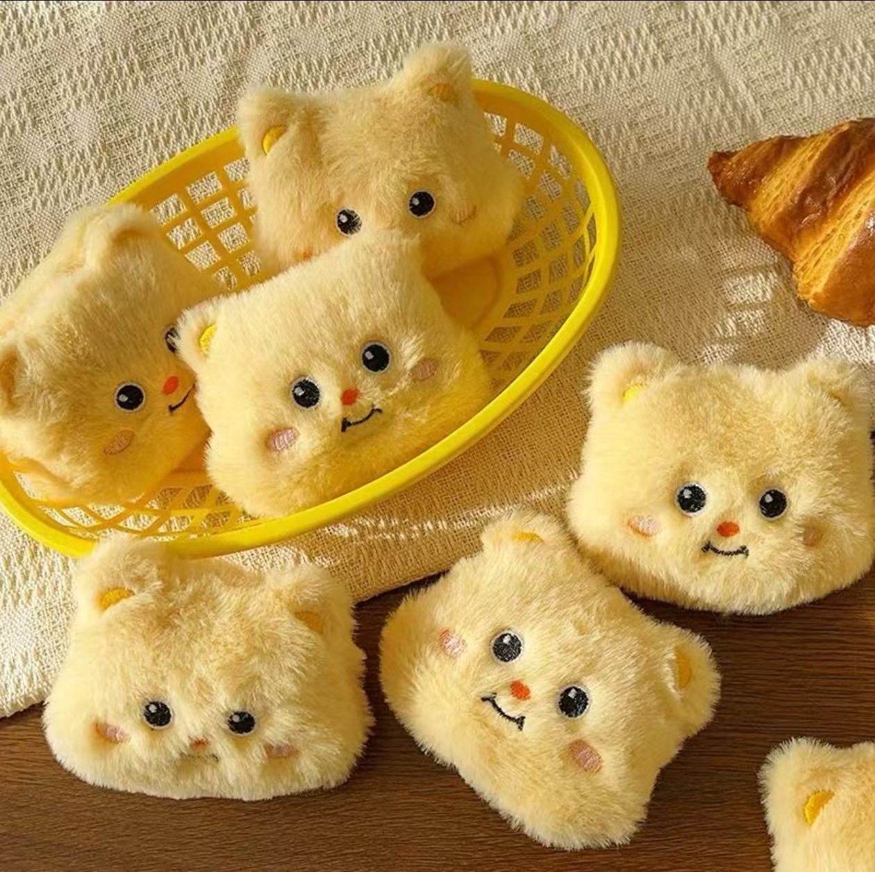 トースト牛角パンストラップバッグリュックサック革かわいいクリエイティブアニメ公仔自動車ストラップ