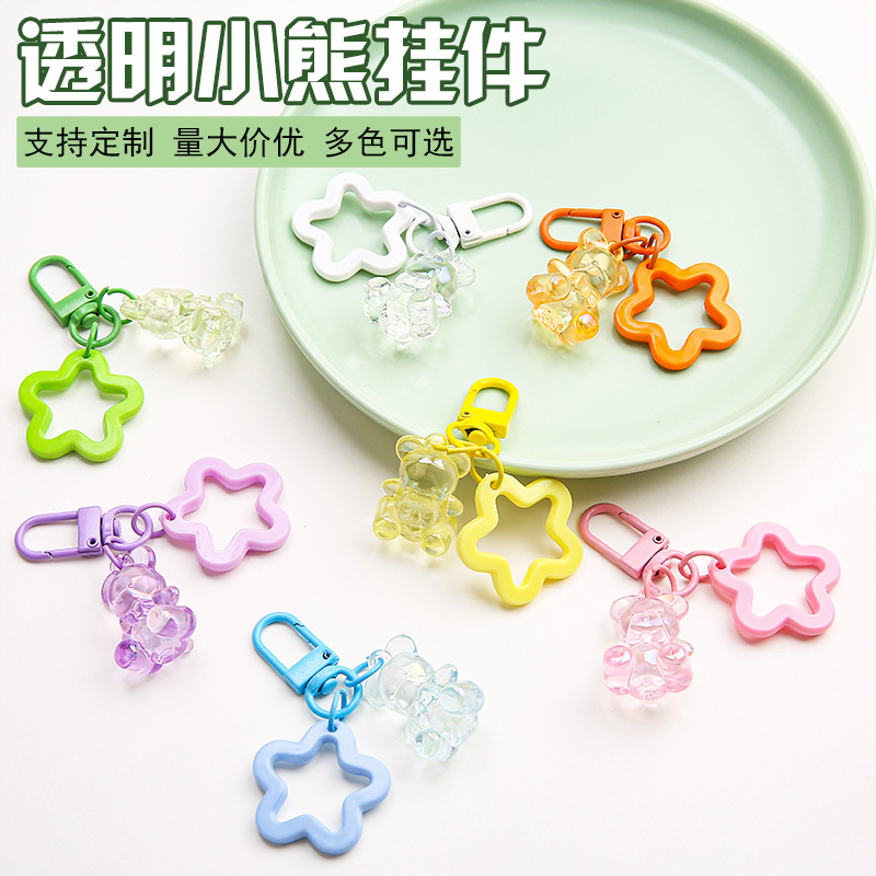 カラー透明立体熊鍵ストラップ透かし彫り五角星アクセサリーdiyキーホルダー