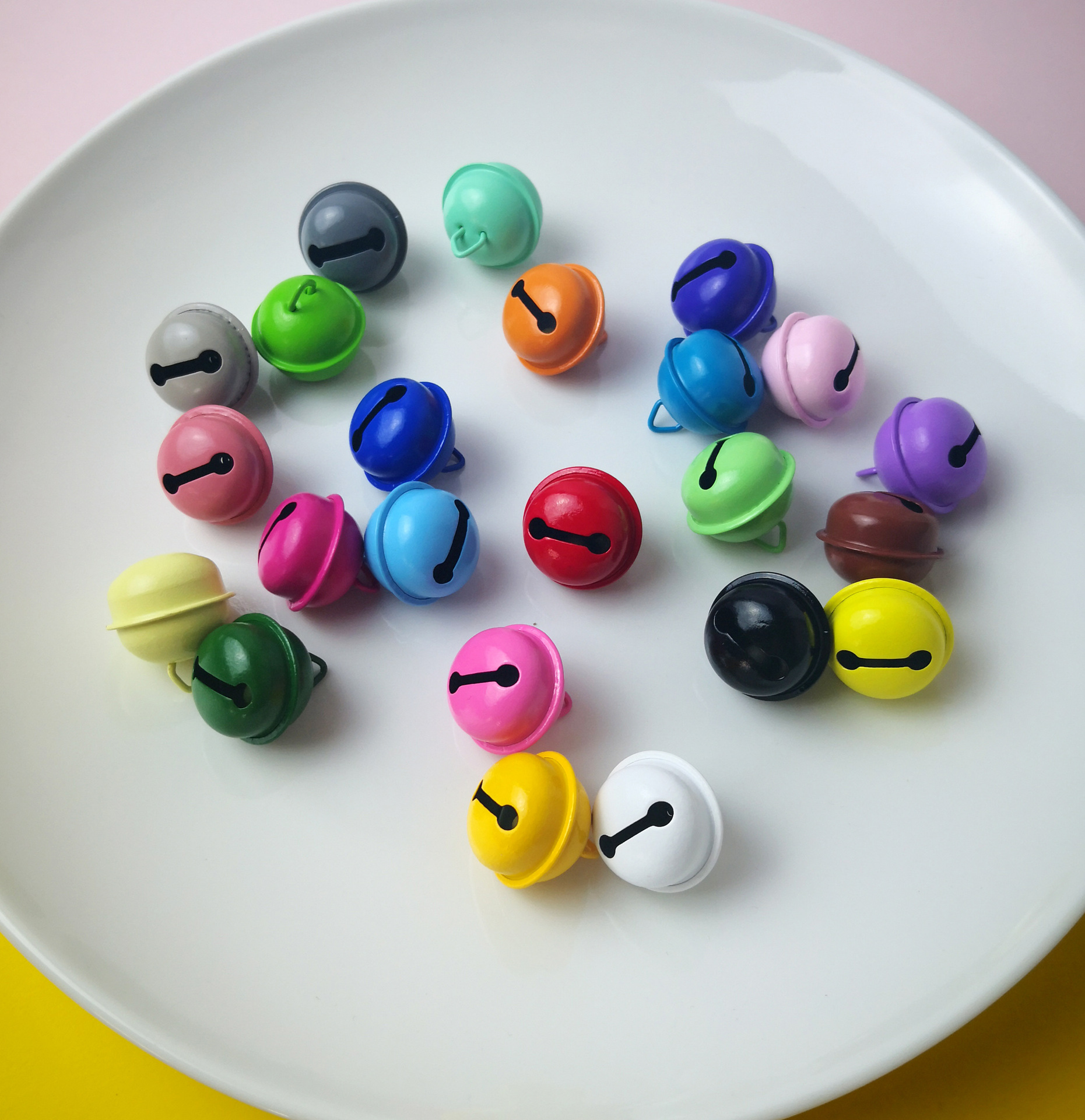 Diyの人形の装飾品のキーホルダーの部品のキャンディーの色の漆の金属の小さい鈴の色のアイデアの1字の鈴